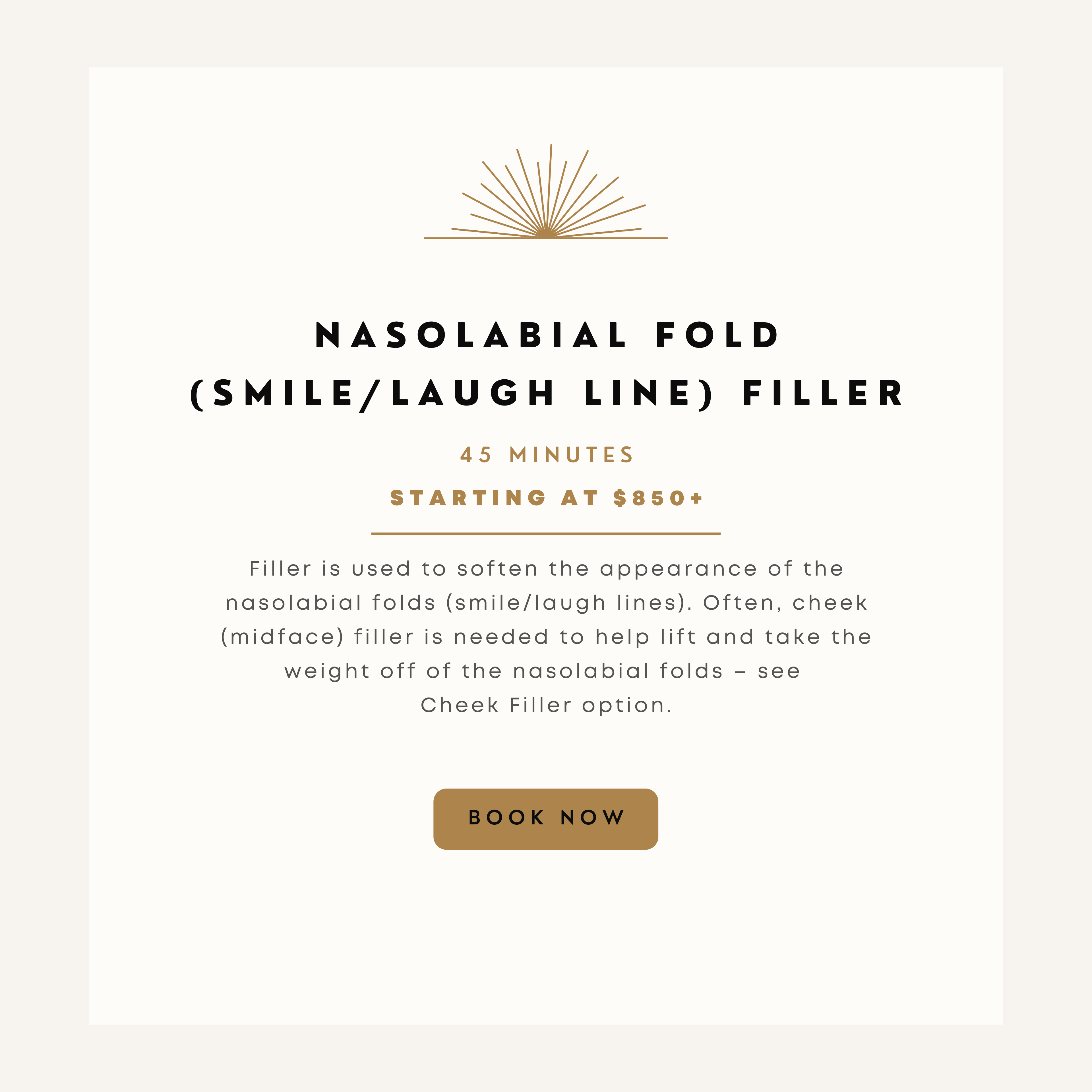 Filler is used to soften the appearance of the nasolabial folds (smile/laugh lines). Often, cheek (midface) filler is needed to help lift and take the weight off of the nasolabial folds.